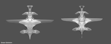 I did the concept work for almost everything in the series - creatures, planets, robots, plants, you name it. The development of the creatures and their survival mechanisms happened with the advice of biologists and paleontologists to make sure they were as plausible as possible. The research and work necessary made this project a dream. I was working on Alien Worlds for about a year.